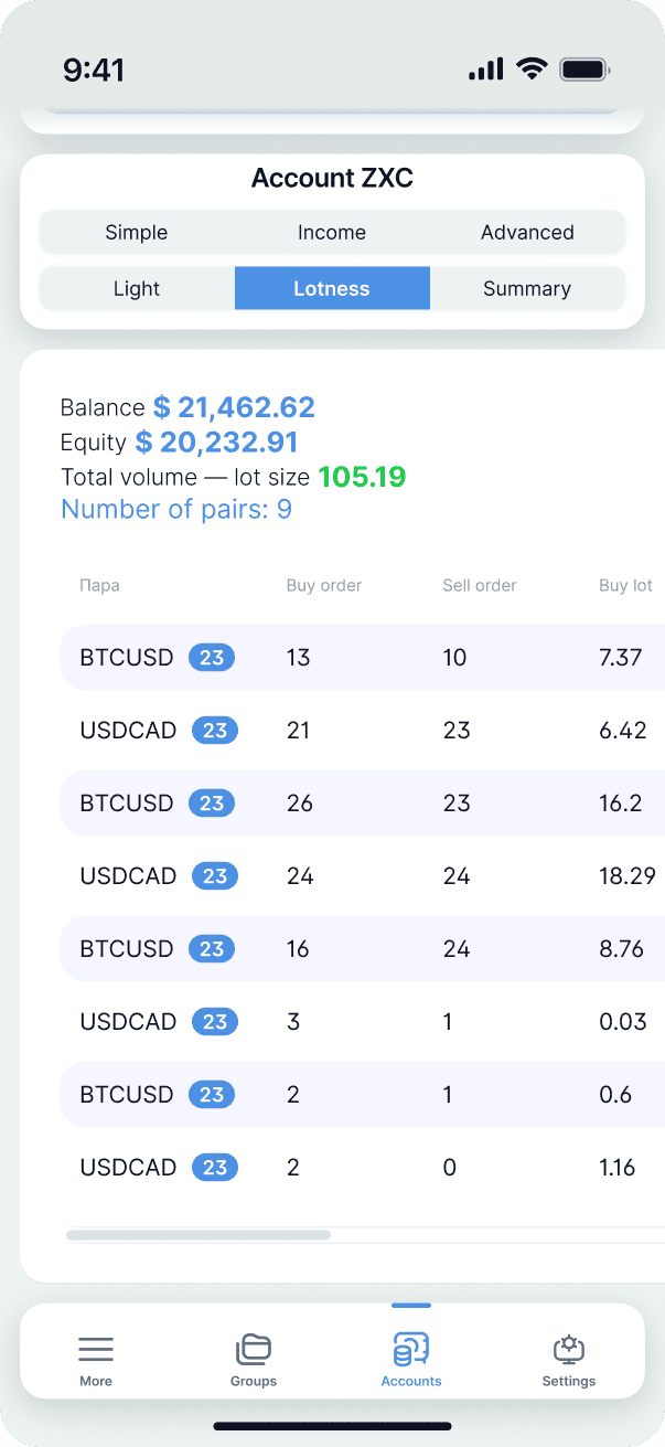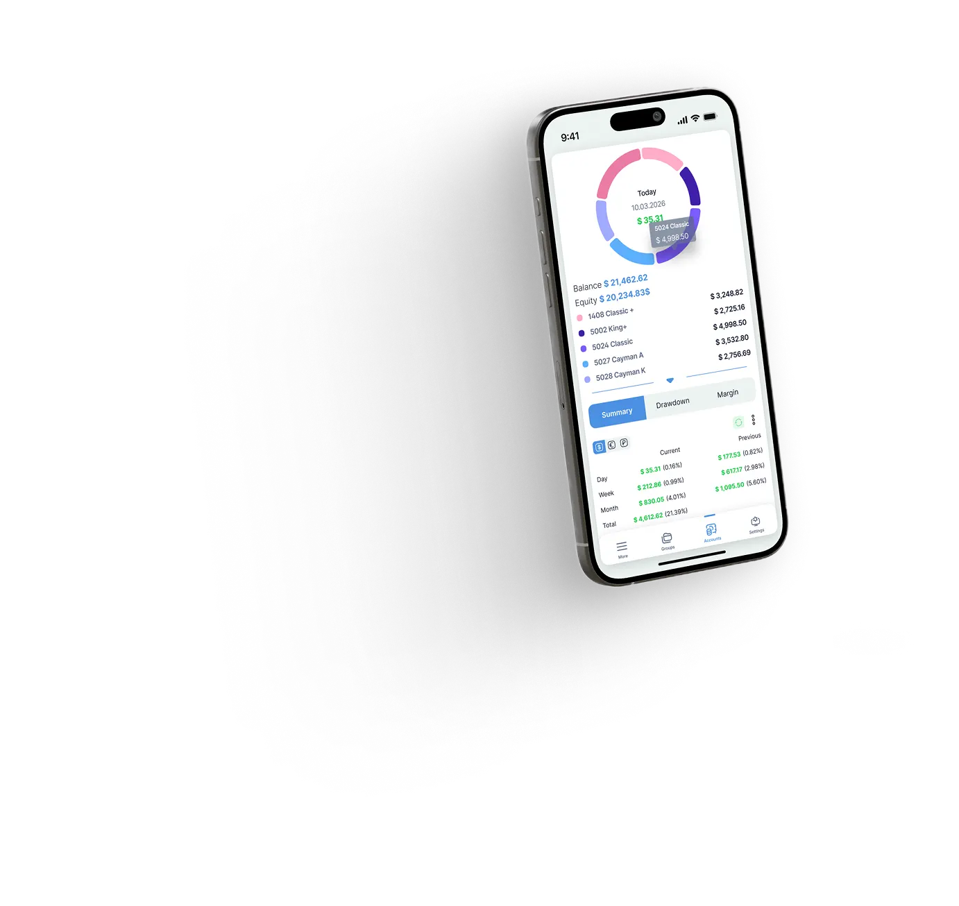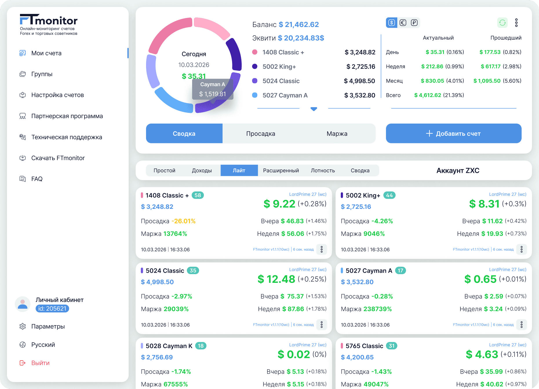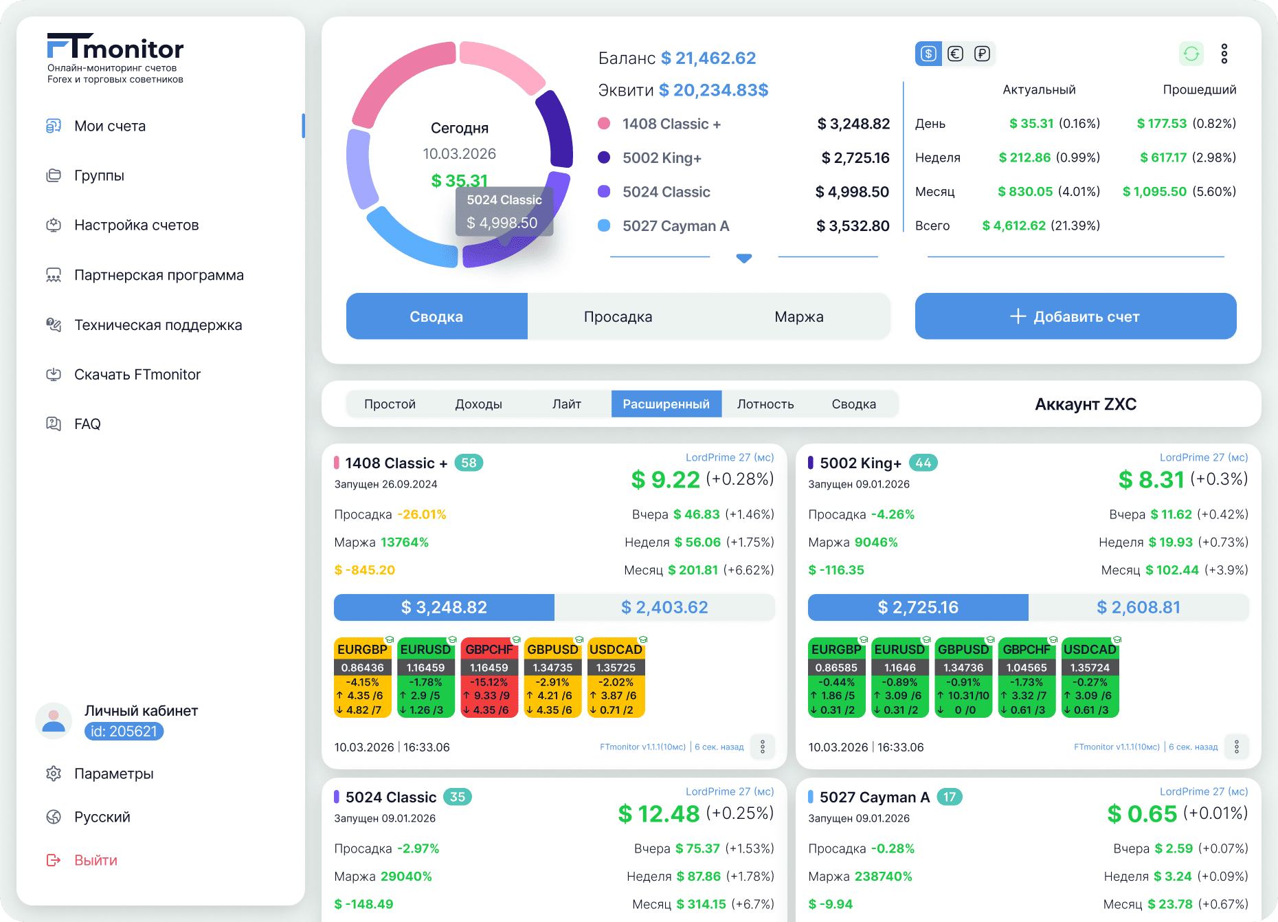Система мгновенно пересчитывает баланс, эквити и текущую прибыль в удобную для вас валюту по актуальному рыночному курсу